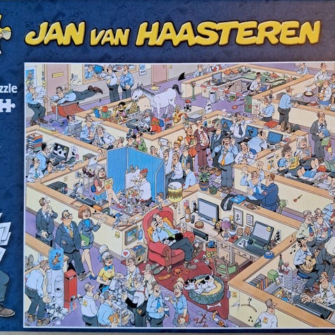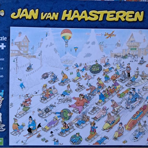Jan van Haasteren Palapeli Liikenne 3000 palaa. Palapelin kuva-aiheena on liikennetilanne. Palapeli täysin koskematon, muoveissa.