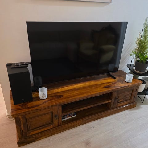 Myydään yhdessä. Tv on ainoastaan seinään kiinnitettävä, mutta saat mukaan telineen, jossa tv nyt kiinni. Kuvassa näkyvä hylly myös lähtee mukaan, jos haluaa. 700 e tai tarjoa!