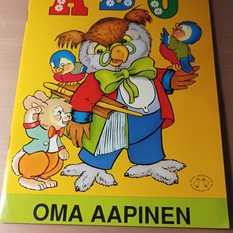 Kukko Lasten Oma Aapinen on lasten oppikirja, jossa kaikki aakkoset. Kirjassa on värillisiä kuvia ja tekstejä. Vokaalit on esitetty punaisina ja konsonantit sinisinä. Siisti.