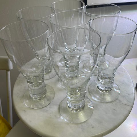 Myynnissä 11 kpl Olli Tammisen vuonna 1977 suunnitteleman Elegia-sarjan viinilaseja