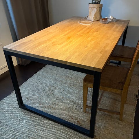 Myydään vaalea tammiviilu Cube bord ruokapöytä, ei tuoleja. Nouto paikan päältä. Tammiviilupinnan voi käsitellä, suojata tai maalata halutessaan.