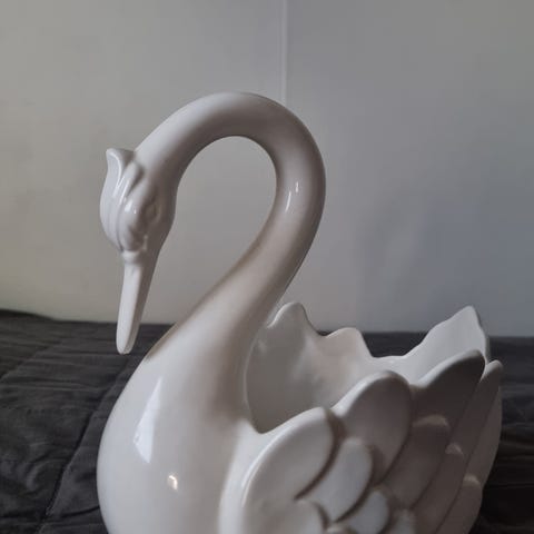 Upea joutsenaiheinen kristallinen astia kor 15 cm pit 14 cm lev 9 cm..upea livenä