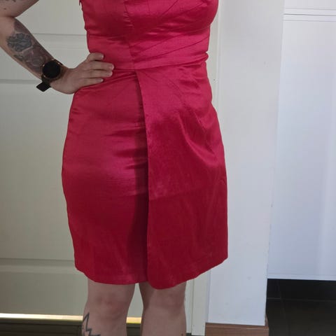 Vila juhlamekko, koko S, vuorillinen, irroitettavat olkaimet, 100% polyesteri.