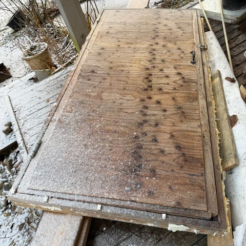 Remppaovi karmeineen 99x208, ollut 130 cm aukossa, josta syystä ollut myös levike. Jos tarviit, saat sen mukaan!