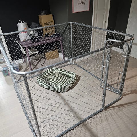 Kannettava lemmikkitarha katoksella. Sisältää pienen lemmikkiluukun (vetoketjulla) helppoa pääsyä varten.