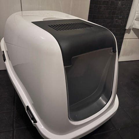 Hyvässä kunnossa oleva kissan hiekkalaatikko.