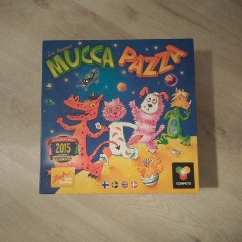 Myydään erittäin hyväkuntoinen Mucca Pazza lautapeli. Kaikki osat ja ohjeet tallella ja erittäin hyvässä kunnossa. Laatikon kyljessä kuvan mukainen ruhje.