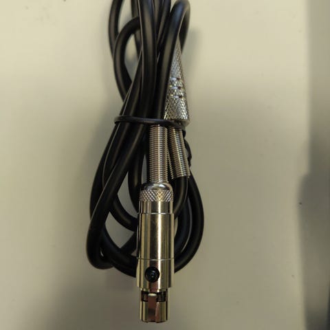 Kaapelin liittimet: kolmenapainen naaras mini XLR - 3,5mm plugi (mukana ruuvattava 6,3mm adapteri)