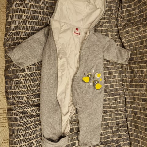 Reima Vauvan talvi haalari, 68-74cm,harmaa kuviollinen, vetoketju haaraosassa, helpottaa pukemista, huppu. Päällinen polyesteri, vuori puuvilla, lahkeessa nepparit ja kuminauha. Ollut yhdellä vauvalla.