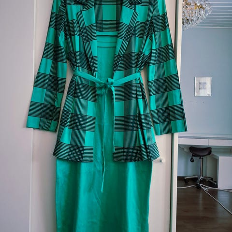 Tämä Charese - leninki on todella chic. Jo vintage ikään päässyt vaate on 100 % villaa ja siinä on vuori. Kooltaan se on ranskalainen 40, mikä vastaa EU vaatteissa S-M. Kai- kai mitta on 48 cm.