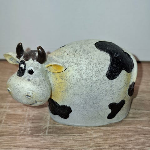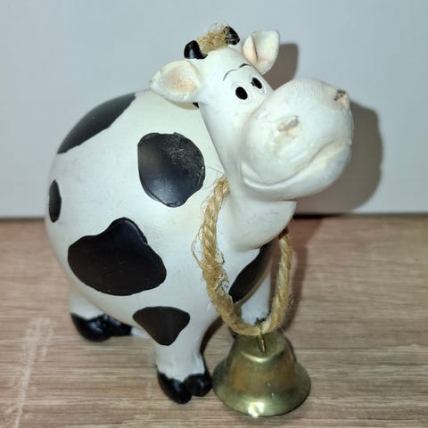 Myydään musta valkoisen lehmä aiheinen patsas.itsellä olnut koristeena hyllyllä.