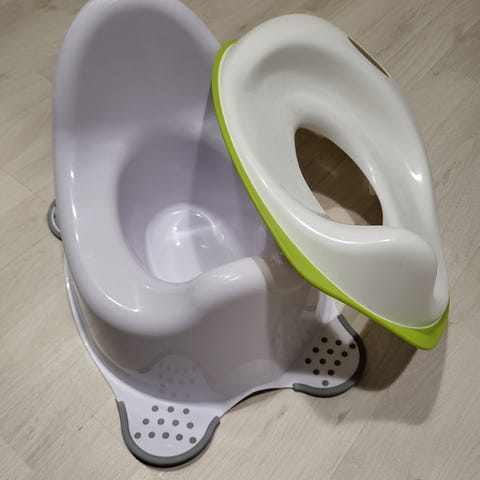Wc-istuin on käyttämätön ja jakkarakin jäi vähälle käytölle.