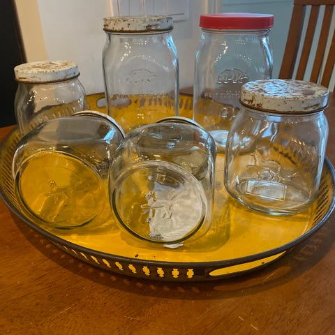 Hieno vihreä karhulan lasin purkki kannella, ehjä siisti