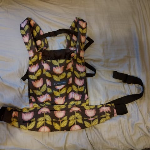 Ergobaby Kantoreppu, valmistettu 100% puuvillasta. Väri punainen, sisävuori ja täyte myös 100% puuvillaa. Kantoreppu on suunniteltu lapsen kantamiseen ja siinä on säädettävät olkahihnat sekä vyötäröhihna. Konepestävä hellävaraisella pesuohjelmalla.