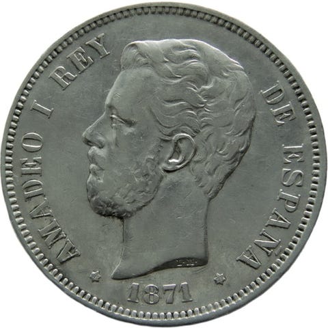 Myydään Espanjan 5 pesetan hopeakolikko vuodelta 1892, Alfonso XIII