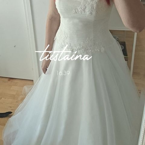 Valkoinen hääpuku kauniilla laskoksilla. Pitäjä 160cm kokoa 34-36