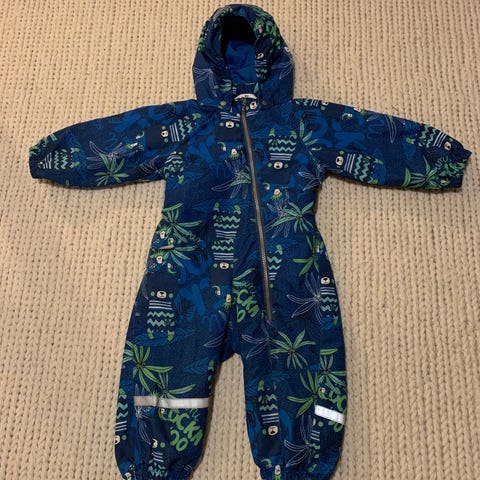 Lassien tummansininen, hyväkuntoinen toppahaalari pesukarhuilla. Koko 80 cm.
