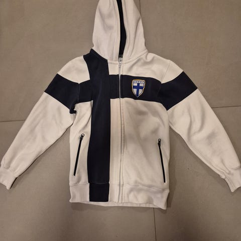 Komea Suomen logolla varustettu tummansininen huppari. Pari kertaa päällä ollut, kuin uusi. Huuhkajien verkkokaupasta ostettu!