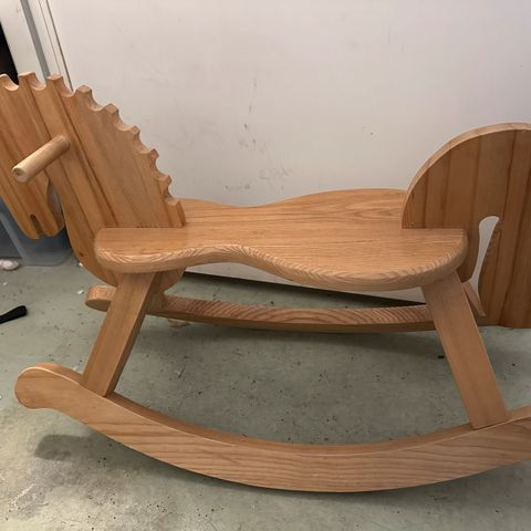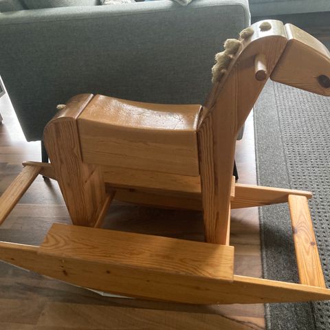 Hyväkuntoinen puinen keinuheppa myynnissä Turussa.