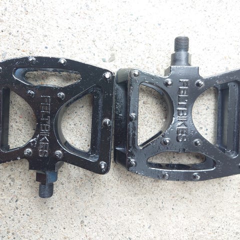 Laadukkaat Rfr- merkkiset flättipolkimet kestävää muovia. Säädettävät ja vaihdettavat piikit. Ei pahemmin käytön jälkiä, vain tahraa kengän pohjasta. Ei ole kolhittu kiviin joten piikit ovat suorat. Laakerit huippukunnossa.
