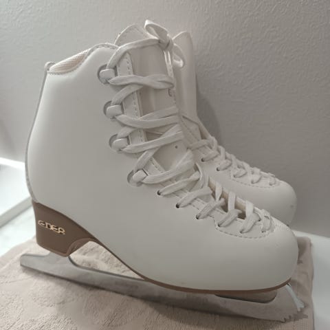 Kerran jäällä käytetyt Edea Tempo -taitoluistimet koossa 225. Aivan pientä värjäymää pinnassa. Vasta terotetut (yksilöluistelu).