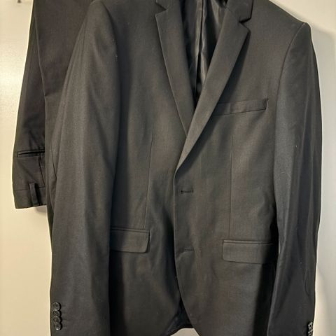 Jack & Jones. Tumma puku. Takki ja housut. Musta. Malli super slim, koko 48. Kuvassa materiaalitiedot. Erittäin hyväkuntoinen. Vain muutaman kerran ollut päällä.
