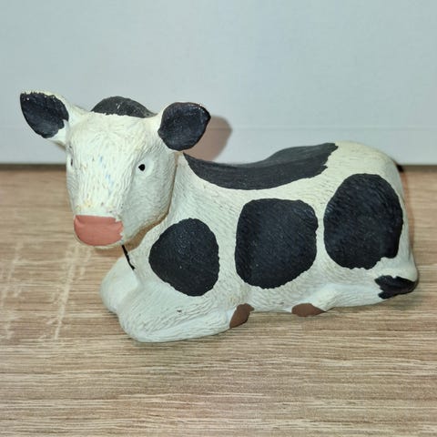 Myydään musta valkoisen lehmä aiheinen patsas.itsellä olnut koristeena hyllyllä.