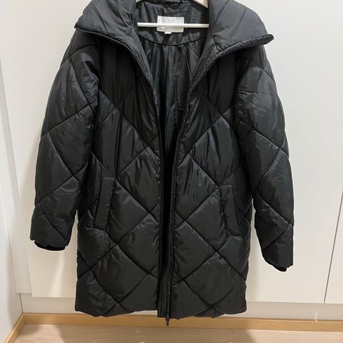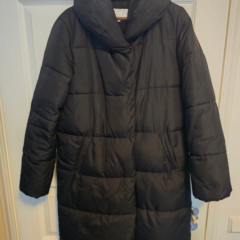 Vilan pitkä talvitakki/kevyttoppatakki, koko 34. Menee kyllä ainakin 36-38 kokoisellekin. Vetoketju ja napit edessä, taskut. Ei huppua.