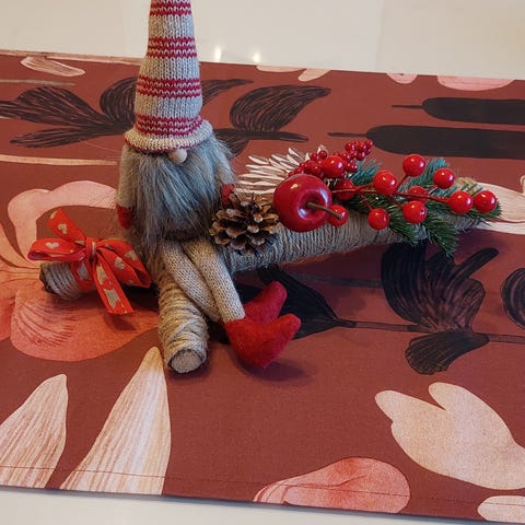 Tonttu lepäilee oksalla, korkeus sydämen keskeltä 15 cm.