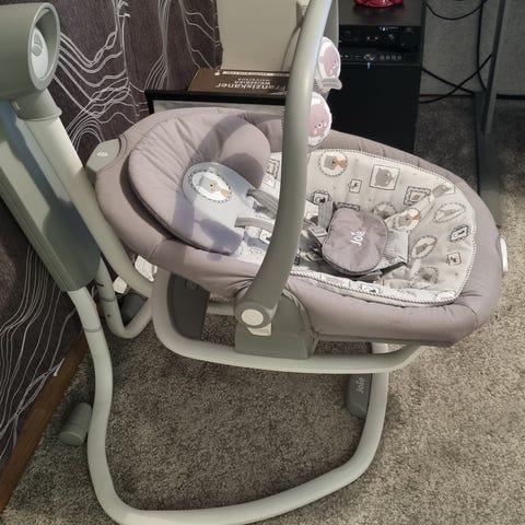 Joie Serina 2 in 1 -sitteriä voidaan käyttää kolmessa eri asennossa. Pyörien ja kahvan avulla Joie Serina 2 in 1 -sitteriä on helppo liikutella ja irrotettavaa istuinosaa voi käyttää myös erillisenä keinuna.