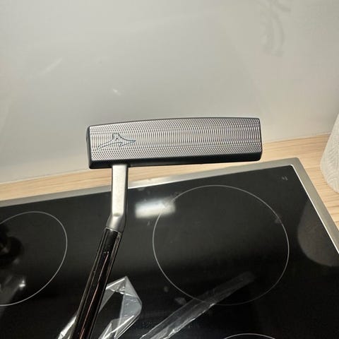 Toukokuussa ostettu putteri jäänyt vähälle käytölle, oston yhteydessä laitettu superstroken grippi. 34 tuumaa.