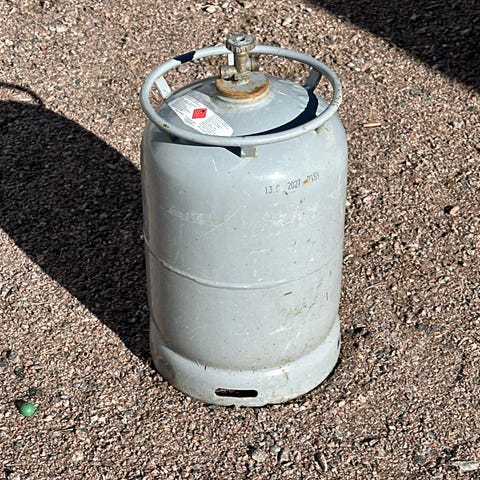 Tyhjä iso pääliventtiili pullo 50e/kpl. Tyhjä 6kg teräspullo 35e/kpl. grillikaasu matkailuauto matkailuvaunu piha kaasugrilli yms. käyttöön.