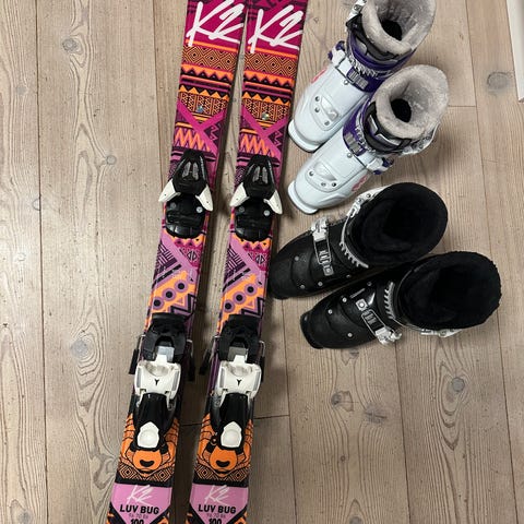 Atomic race sukset, pituus 100 ja monot, joiden koko 32-33 luokkaa. Käytetyt, eli kulumaa toki on, mutta täysin toimivat pelit. Toisen suksen kärjessä yläpuolella kolhu (näkyy kuvista), mutta ei vaikuta toimivuuteen millään tavalla.