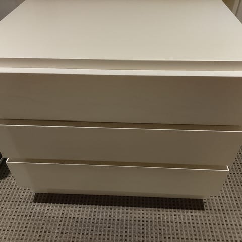 Jonkin verran kulumaa vetolaatikoiden reunassa. Laatikot siistit sisältä.
