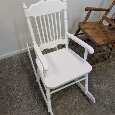 Hyväkuntoinen pieni keinutuoli, leveys n.40cm, jalakset n.80cm.