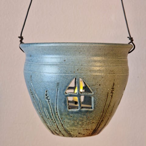 Savenvalajan puu-uunissa polttamaa käsityötä: 1960-luvun kynttilälyhty. Tekijä on Finna.fi -tietokannan mukaan vanha taitaja Johannes Uschanov, yksi kuuluisista ko. Karjalan kannaksen suvun savitöiden tekijöistä.
