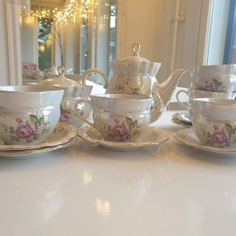 Yhteensä seitsemän kappaletta, viisi tassia ja kaksi teekuppia. Kaikki erilaisia, leimat pohjassa, hyvässä käytetyssä kunnossa. Ei säröjä tai halkeamia.