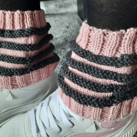 Käsinneulotut ruskeat nilkanlämmittimet.