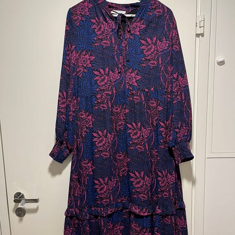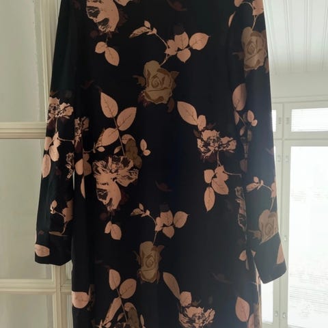 Myydään uudenveroinen Selected femme pliseerattu mekko, jossa pitkät hihat napituksella, v-aukkoinen pääntie ja vyötärönauha. Väri: musta jossaa beiget kuviot.