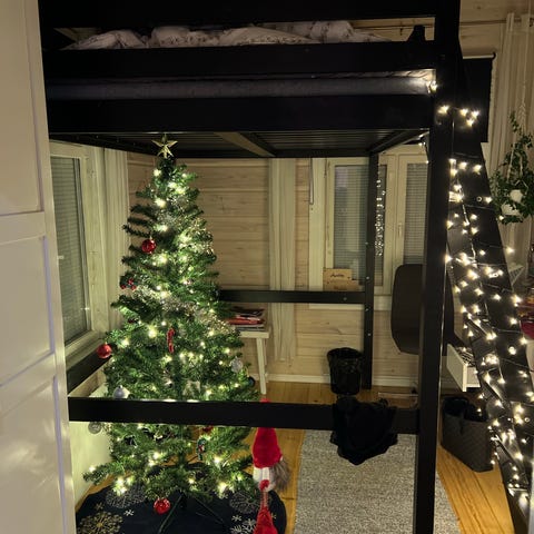 Sisältää verhon, jonka saa laitettua sängyn alaosan eteen.