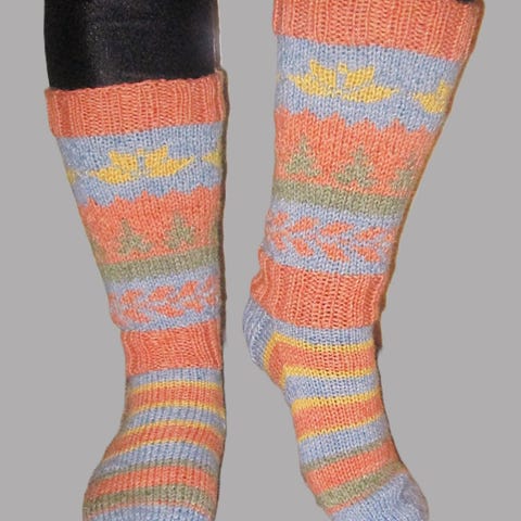 Koko 41/42. Jalkaosan pituus 27 cm ja varren pituus 26 cm nilkasta ylöspäin mitattuna. Kotikulta tuokio lanka. Hinta 20 euroa. Kotoa noudettuna käteismaksu !