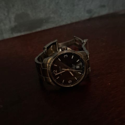 Tässä kellossa on kyllä yksityiskohdat kohdillaan. Jos siis kaipaat laadukasta, selkeätauluista kvartsikelloa maltillisessa 39-koossa, 100 metrin vedenkestävyydellä, kohotetuilla indekseillä ja yksityiskohdilla, niin tästä löytyy. Ranneke nyt noin vajaa 19 cm ranteeseen sopiva ja tosiaan jatkopaloja löytyy.