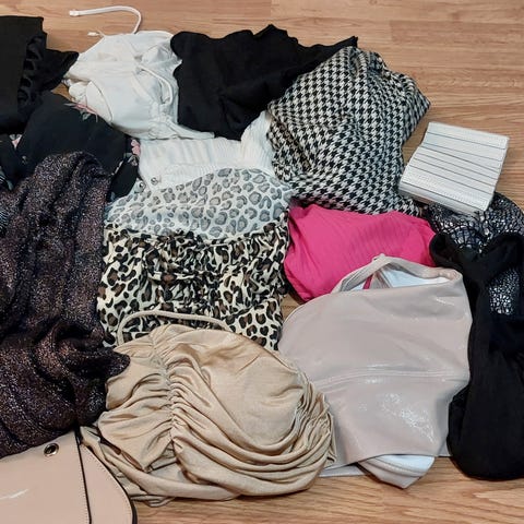 Myyn koko pakettina.Vaatteet nykyaikaisia.Osta itselle tai laita vaikka esim kirppikselle myyntiin.Paketin arvo huomattavasti kalliimpi millä myyn.Pääasia että saan itse pois kaapista lojumasta kun ei käyttöä.Mielellään pikaiset kaupat,maksu tilisiirto/mob pay.Paketti heti postiin kun raha näkyy.Hinta sisältää postin