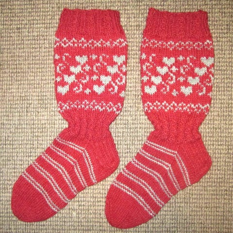 Ihanat käsin kudotut sydänsukat.