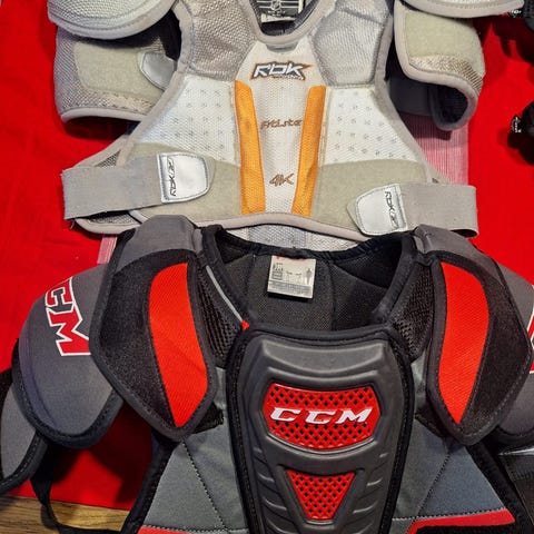 Tämmönen lasten jääkiekko panssari jäänyt nurkkiin pyörimään. Ei ole paljoa käytetty.
