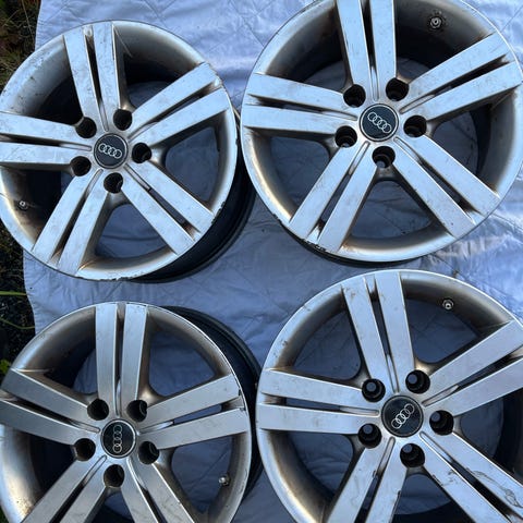 Siitä audin alla olleet RC Designin 16” vanteet Michelinin kitkarenkailla. Renkaissa pintaa 3-4mm, yhdestä vanteesta puuttuu keskikuppi. Vanteet on suorat eikä oo hiottu kanttariin. Kysy jos on kysyttävää.