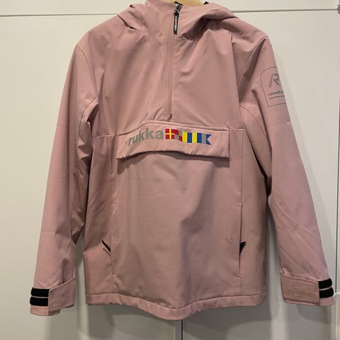 Anorakissa kiinteä huppu, vetoketjulliset sivutaskut etutasku, tarrakiinnitteinen kengurutasku.