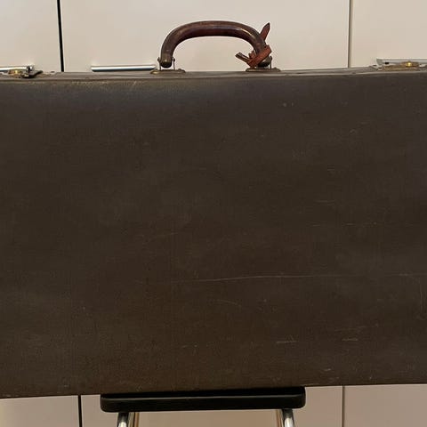 Pieni ja sievä vanha matkalaukku. Viininpunainen. Sisustukseen, säilytykseen, tai matkalle.