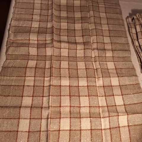 Käytettyjä, hyväkuntoisia "keskipaksuja" 100 % pellavaisia keittiöpyyhkeitä 9 kpl. Koot hieman vaihtelevat, pituus 67-72, leveys 47. Muokkautuneet (melko vähäiseksi jääneessä) käytössä hyvin imeviksi ja toimiviksi pellavan tapaan.