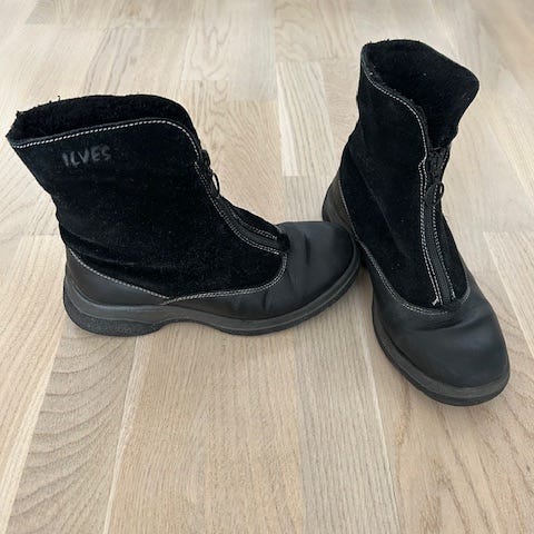 Tässä ovat valkoiset karvakengät. Hyvin lämpimät ja mukavat jalassa. Lappilaiset joiden mukana tulee saamelais pipo🤗